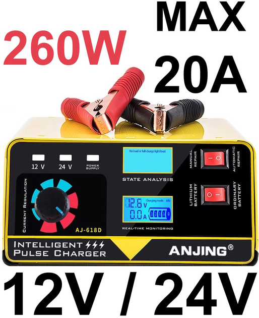 Автоматичний зарядний пристрій 260W (до 20A), імпульсна зарядна станція 12-24Вт ANJING 618D