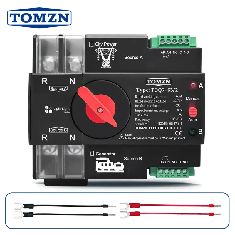 Автоматичний перемикач вводу резерву (АВР) TOMZN TOQ7-125/2P 125A 2P (1 фаза)