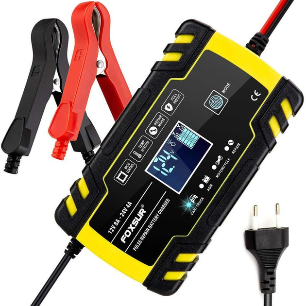 Зарядний пристрій для автомобильного аккумулятора Foxsur 12V-24V 8A